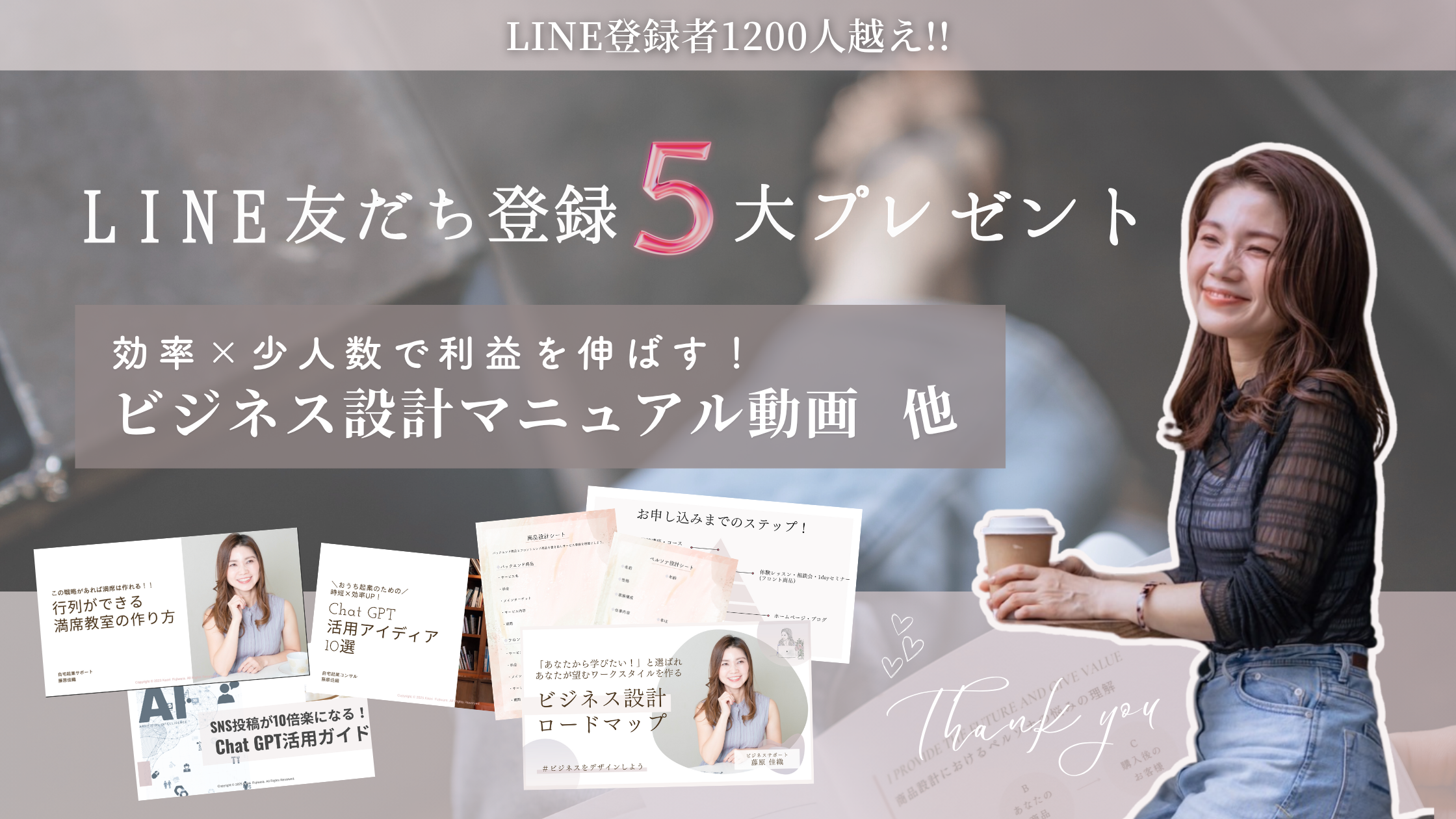 6ヶ月間かけて、教室運営や集客について学び実際に実践していくビジネス設計講座を行っております。